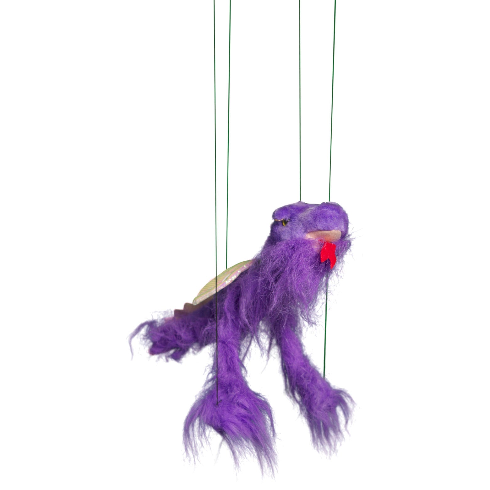This mini version a Purple Dragon is an innovative string puppet that will hop, skip, and dance simply by moving the control bar and strings.